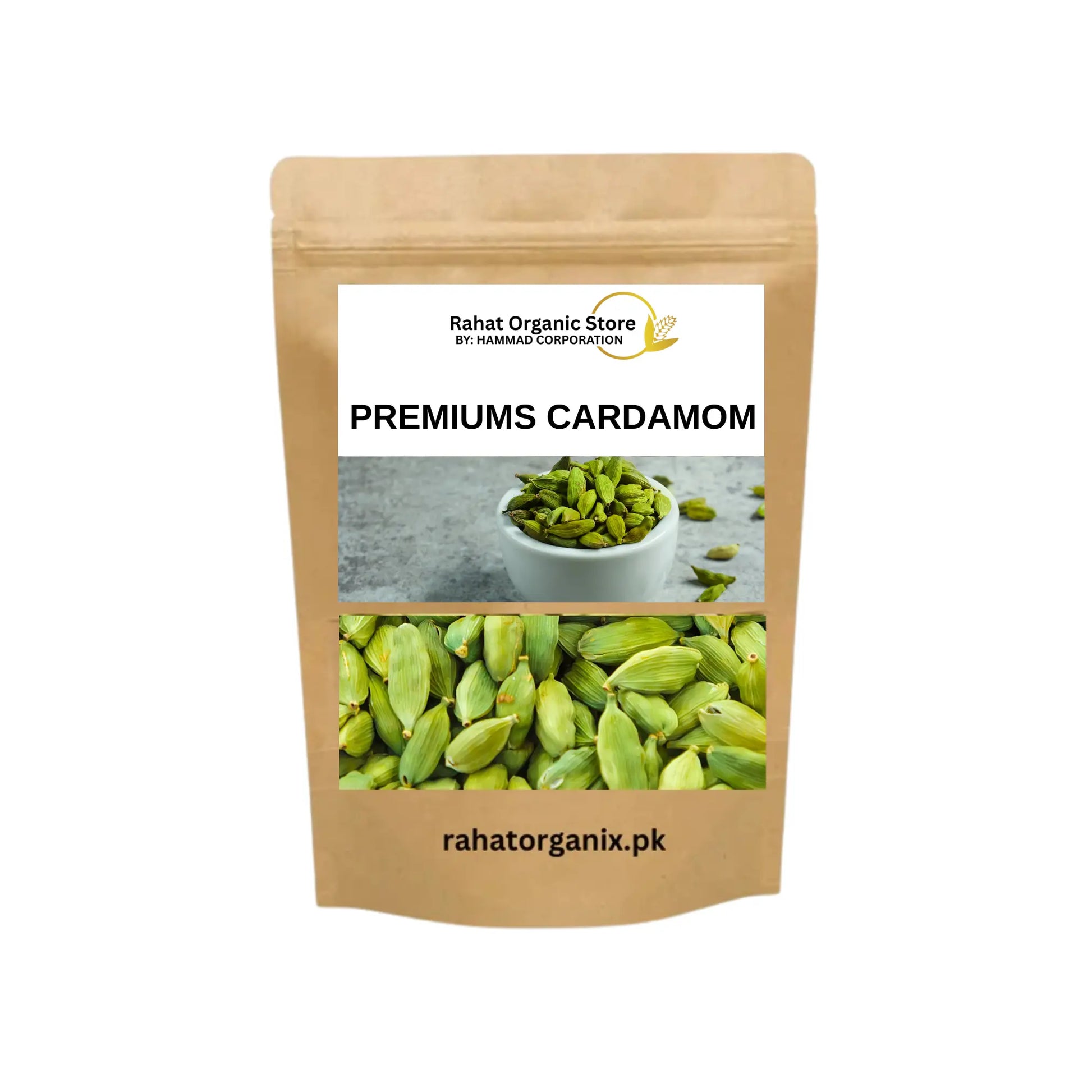 Discover the finest organic Premium cardamom (Elaichi) at Rahat Organic Store. Handpicked large green pods with bold aroma and rich flavor make this the ultimate choice for tea, desserts, biryani, and festive dishes. Perfect for those who value taste and purity in every ingredient.