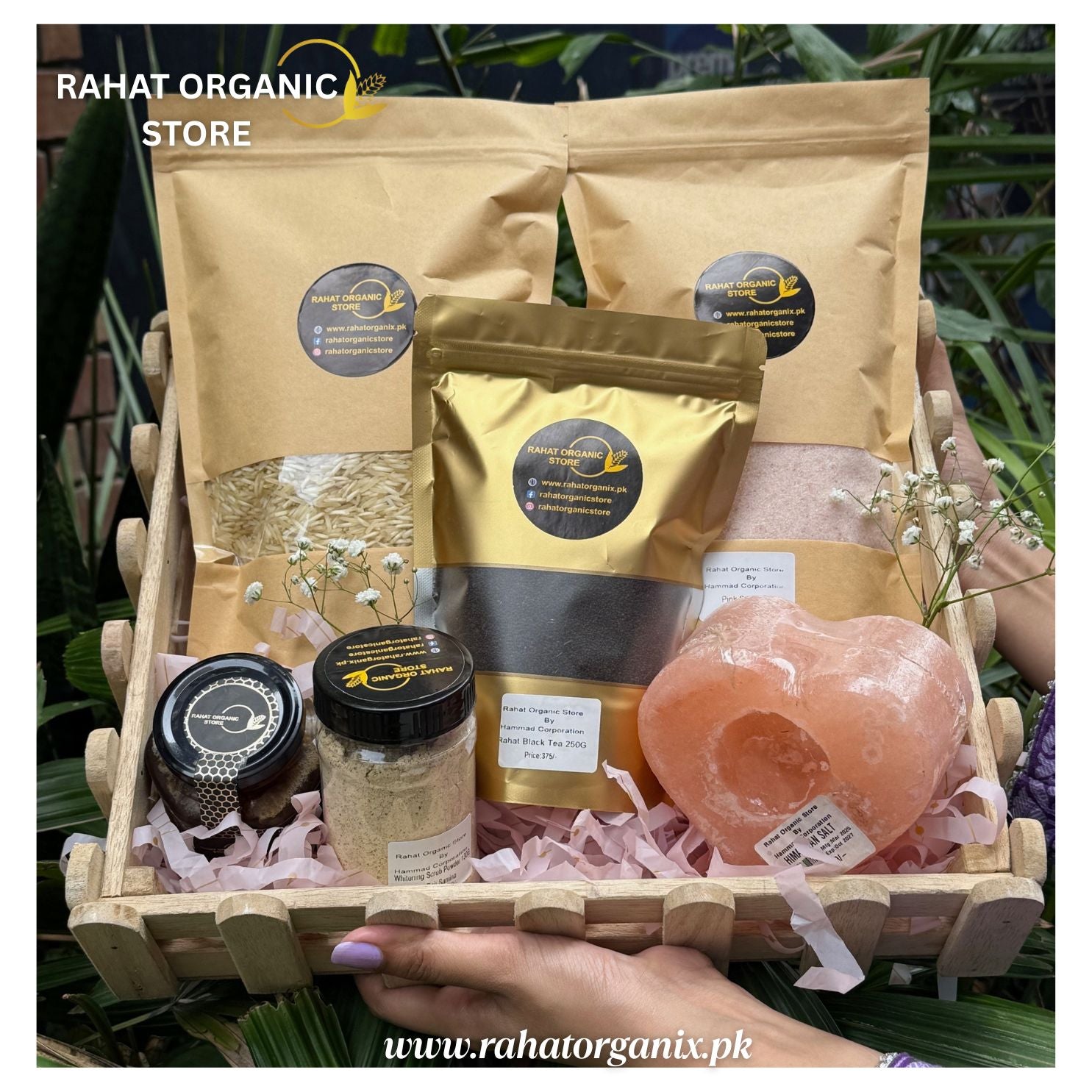 Discover the perfect blend of purity, health, and heritage with the Rahat Organic Gift Basket — a beautifully curated collection of natural products straight from our villages to your home. Whether you're celebrating a special occasion or simply want to share the gift of wholesome living, this basket is a token of love, care, and wellness.